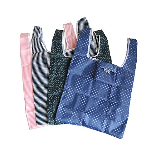 LiangTing 4 Packs Foldable Reusable Shopping Tote Bags Travel Totes Recycles Bags Grocery Handy Bags(Random Pattern)