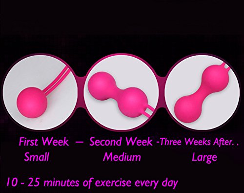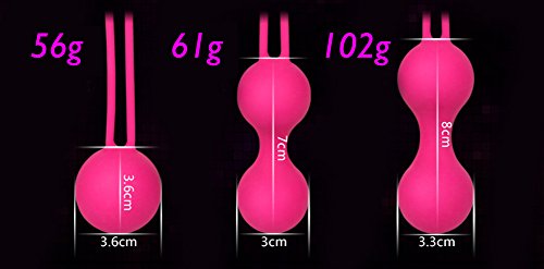 Set of 3 different weights to graduate through the levels of resistance: 36mm / 56g -Single Ball,33mm/102g and 30mm / 61g Moderate to Advanced Double Kegel.