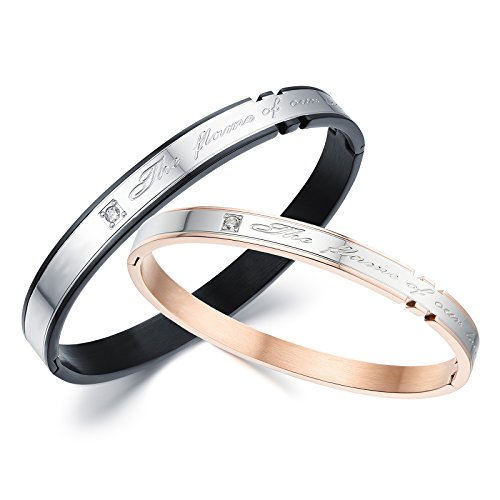 -. Title : Richapex ペア メッセージ ジルコニア 入り サージカルステンレス製 ペア バングル (2個セット) メンズ レディース カップル