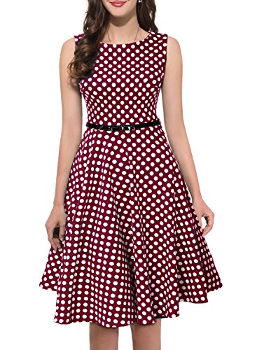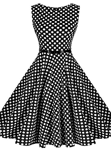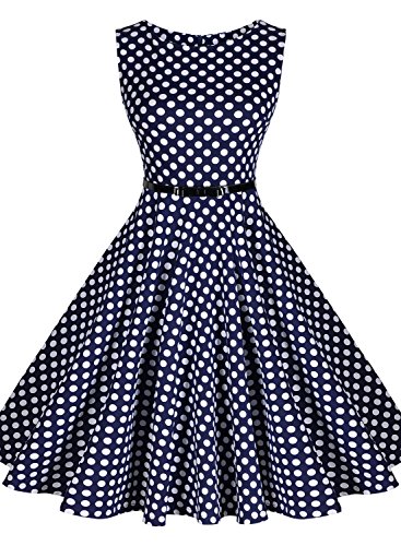 Retro Polka Dot Sleeveless With Belt Casual Bridesmaid Dress