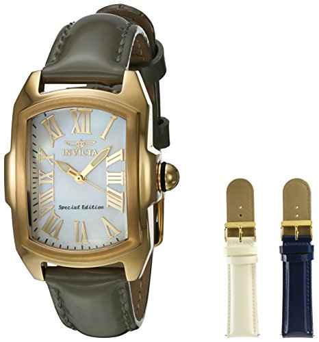 -. Title : Invicta Lupah Mother of Pearl Dial Black Leather Ladies Watch 20457