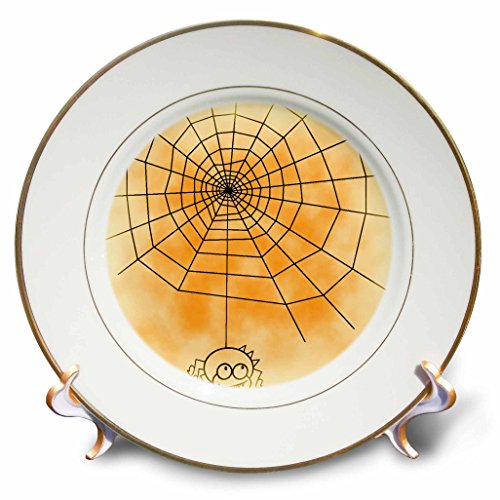 3dRose cp_52733_1 Orange Spider Web Spooky Art Halloween Porcelain Plate, 8-Inch