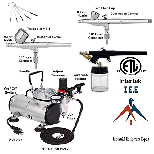 New 3 AIRBRUSH & COMPRESSOR KIT Dual-Action AIR BRUSH SPRAY SET Tattoo Nail Art