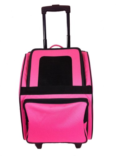 -. Title : Petote Rio Pet Carrier Bag on Wheels, Black Trim/Fuchsia Pink