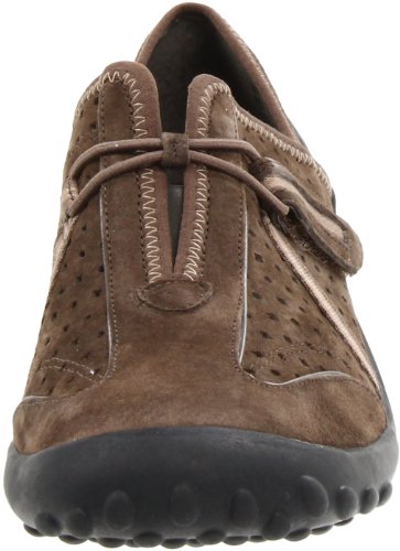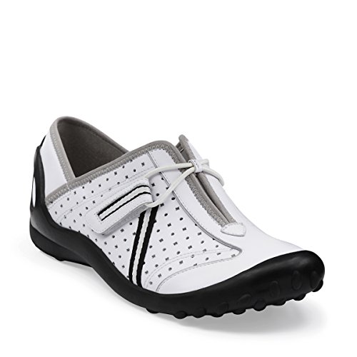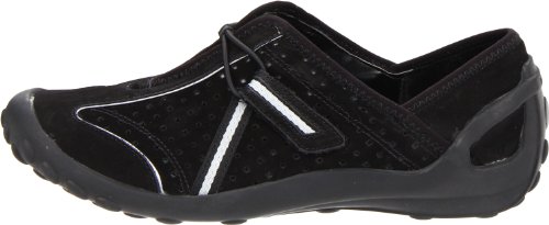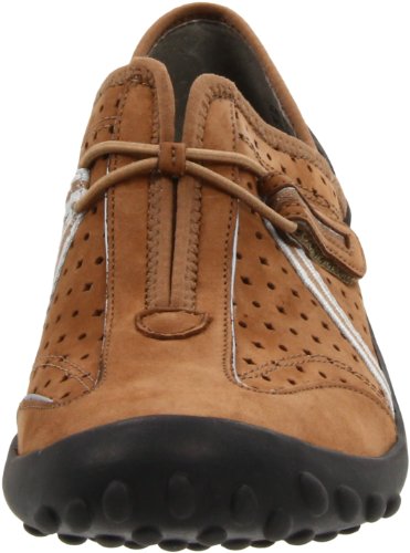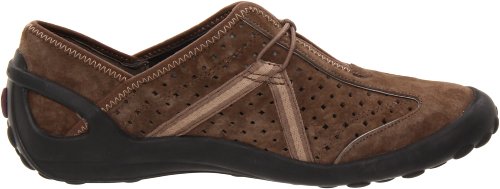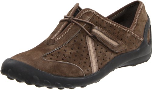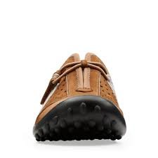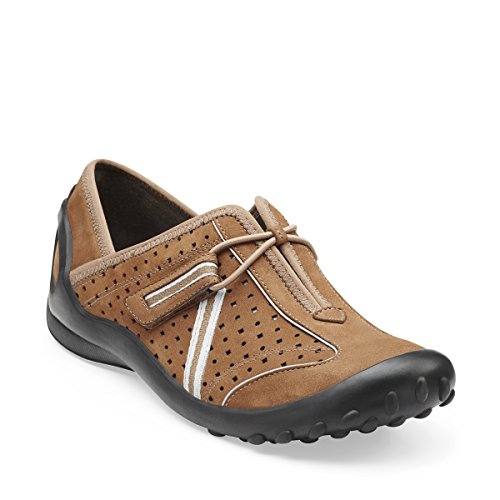 Amazon.com Product Description Easy, cozy and effortlessly laid-back, trot around town in Clarks's Tequini slip-on for casual fashion that's famously Clarks comfortable. A hook-and-loop tab that secures the elastic band across the vamp offers a quick and clever dressing solution to the leather upper with perforated panels for breathability. The flat heel and rubber sole lend traction control and stable walking to your errand-running, so you're always in control in Tequini.