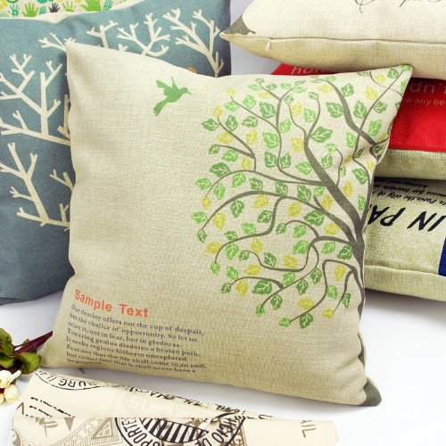 - Title : Lavievert Decorative Linen Square Throw Pillow Cover Cushion Case Handmade Toss Pillowcase with Hidden Zipper Closure, Vintage Style, Bird and Tree Pattern, for Living Room, Sofa, Etc... Fit a 18 X 18 Inches Insert
