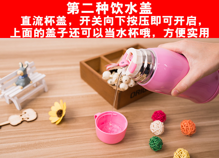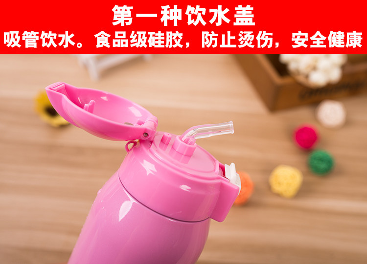 儿童小学生宝宝女童便携带吸管保温杯小孩喝水杯子水壶防漏杯双盖
