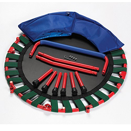 Folds for easy storage and travel. Unfold your trampoline - Screw on the legs - Attach the handle - Bounce - Repeat.