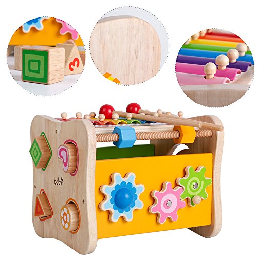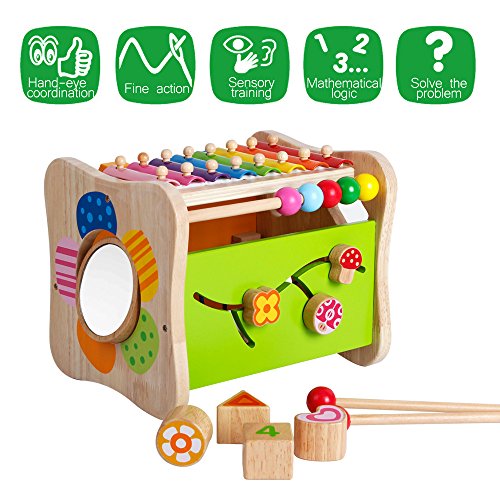 Encouraging kids' hands,eyes,brain coordination;improving chilren's pratical bility,music sense and getting to know the colors and shapes.