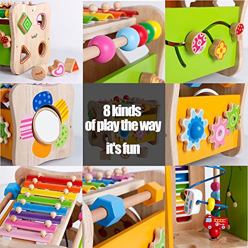 8 kinds of play mode:1.Hand piano wood 2.Rotate Building Blocks 3.Rotate gear 4.Building blocks shape sorting 5.Rainbow Abacus 6.Flip the mirror 7.Shift the game 8.Around the beads