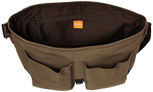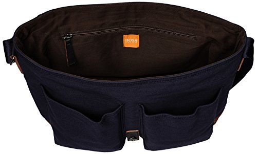 -. Feature : Two open pockets under flap / One main compartment with flap / Pockets: 2 interior slip, 1 interior zip, 2 exterior