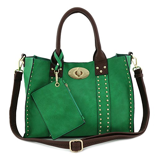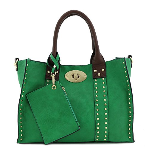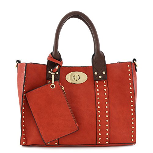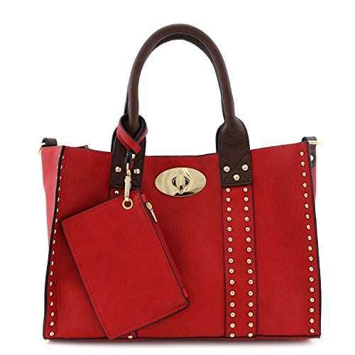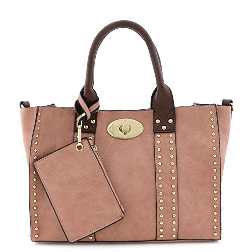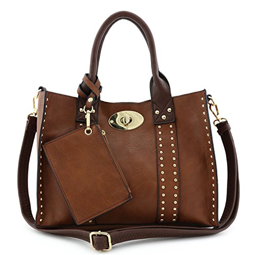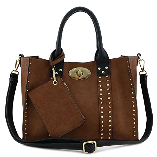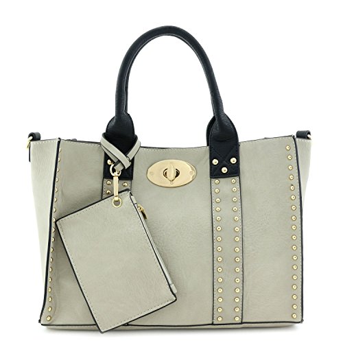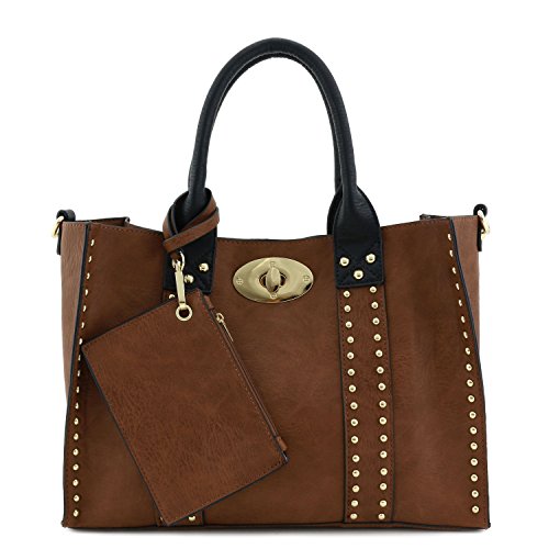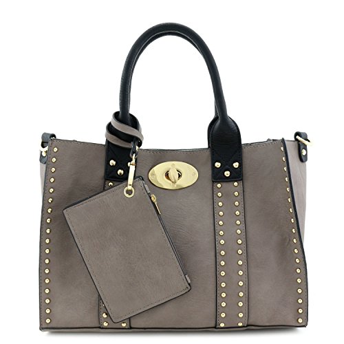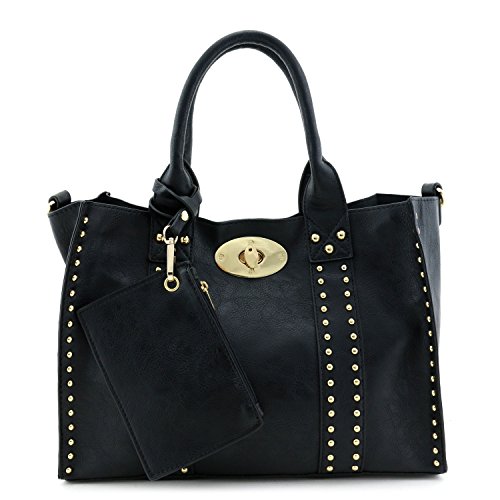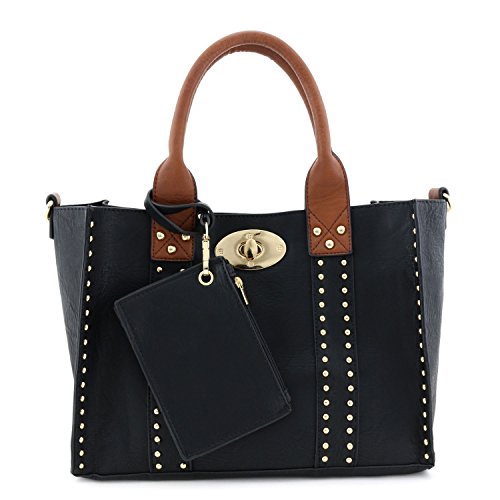 | (Alyssa)/Accessories/Handbags/DIRECT FROM USA/3pc Set Studded Turn Lock Tote Bag with Crossbody |