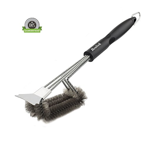 Besitek Grill Brush with Integrated Cleaning Scraper,BBQ Grill Brush 3 in 1, Durable and Effective, Barbecue Grill Brush Bristles 360° Clean Perfect Barbecue Tool