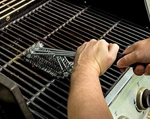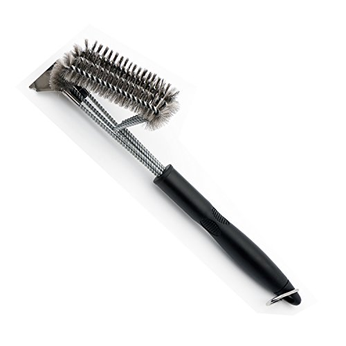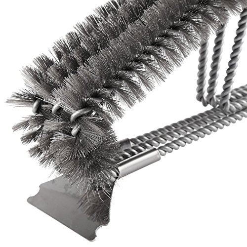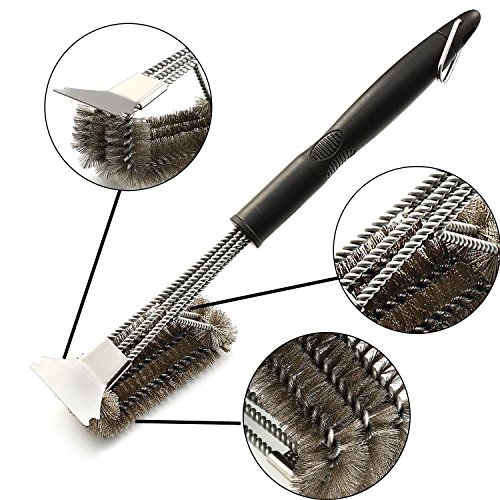 - EFFORTLESS CLEANING: With a unique design, this 18" long barbecue brush has three brushes and scraper , each with its own equivalent stroke. Be prepared to clean every bit of residue with its inovative 360 degree rotator