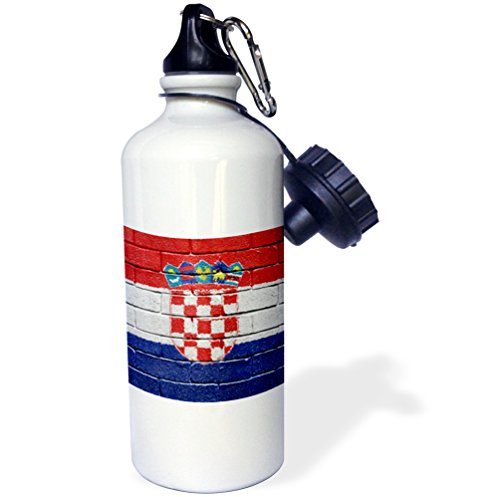 3dRose wb_155212_1 "National flag of Croatia painted onto a brick wall Croatian" Sports Water Bottle, 21 oz, White