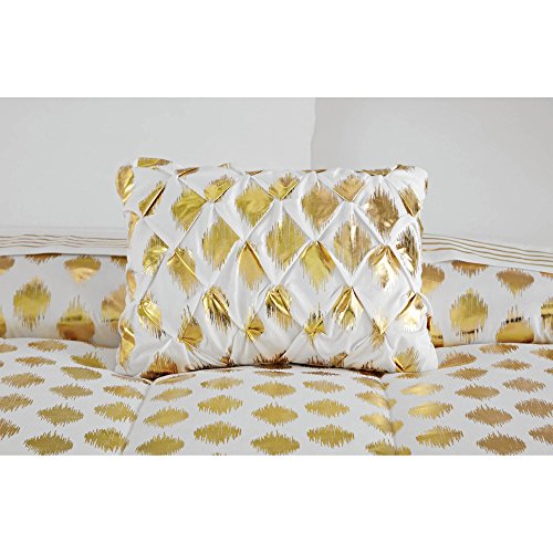 Metallic Gold Ikat Dot Design 100% Polyester 6-Piece Coordinating Comforter Set, Twin-XL Size