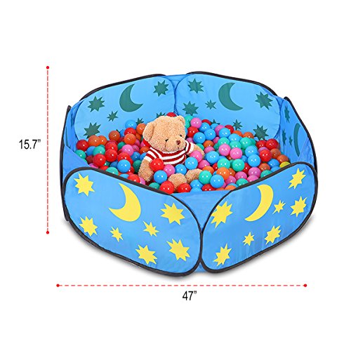Watch your children have hours of fun with SpringBuds cheerful colored hexagon playpen ball pit! Just let it pop up and your little one will love to make memories with this ball pit by crawling, jumping or lying down inside it Specification: *Material: Soft Waterproof polyester fabrics and high-strength memory steel holder. *Unfold size: 47.2(D) X 30(H) inches *Package Includes: 1 x Ball pit 1 x zippered storage bag (BALLS NOT INCLUDED) *Recommended age: 6 months and up Advantages: *Stimulates the children's Imagination, Encourage their Color Perception and Shape Recognition and even Cultivate them to be Independent and Coordinate. *Quick Easy to Assemble - Pop up design makes setup a breeze . *Convenient Storage - Folds flat for easy and compact storage. *Durable Easy to Clean - Made with durable fabric that wipes clean for a long life of fun and entertainment. *Lightweight - which makes it possible to move around, to the backyard, to friends' house, to camping and anywhere you like. *Indoor and outdoor play - Great for at-home entertainment, a day at the beach, and more. How to use: *Open the packaging and carefully to expand it. *Note that the product will quickly bounce open. *Pay attention to product folding method. 0 |