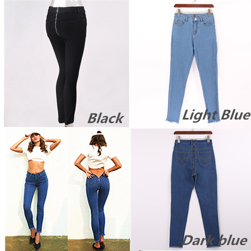 高腰紧身牛仔裤,后背有精神拉链,独特的设计