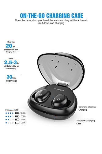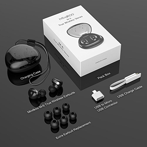 -★ Looking for an Alternative to Annoying Bluetooth Earbuds with Cable? -★ Wanna to enjoy music without any trouble when you're in shower? MindKoo M-6 Bluetooth 4.2 Waterproof IPX4 Authentic Wireless Earbuds will give you the style that you're looking for, while delivering an amazing audio experience. Experience 100% wire-free, stereo audio for hours with these tiny earbuds, Authentic Wireless Earbuds gives you the most comfort and freedom for any activity enen though when we're takeing in shower! Specification: Bluetooth Version: 4.2 Bluetooth Distance: 10M/33 Feets Control Mode: Touch control Waterproof Level: IPX5 Battery Capacity(Earbuds): 40mAh Battery Capacity(Box): 1000mAh Charging Time(Earbuds): 30 Minutes Charging Time(Box): 2 Hours Charging Times(Charging Case): 6-10 Times Talking Time: 3-4 Hours Standby Time: 72 Hours Playback Time: 3 Hours Frequency: 2402MHz-2480MHz Speaker: φ10mm * 2 Hi-Fi stereo Impedance ohm Value: 32 Battery Output(Earbuds): 0.09W Receiver Sensitivity: -94dB Microphone: -42dB MEMS Microphone Frequency: 20Hz-20KHz - Kindly Note: 1. Please keep the wireless earbuds away from babies in case they eat off them. 2. Only the main earbud can use MIC function. Package Includes: 1 x MindKoo M-6 True Wireless Earbuds(Left Right) 1 x 1000mAh Charging Case with Landyard 1 x Charging Cable 1 x USB to Micro USB Connector 3 x Ear Caps 1 x User Manual