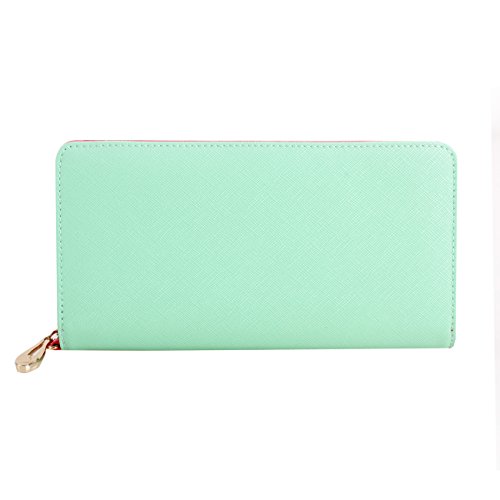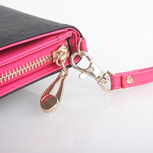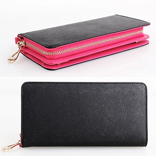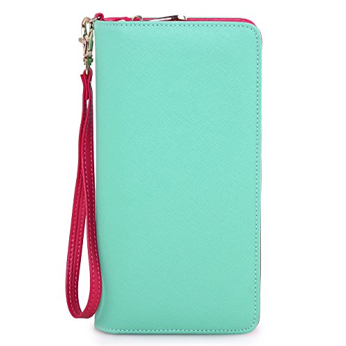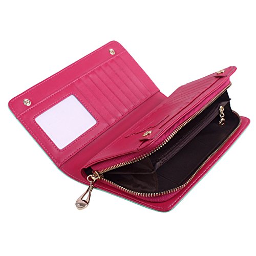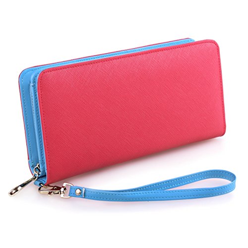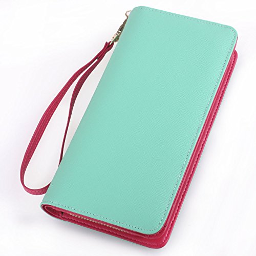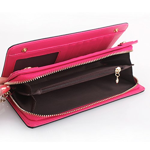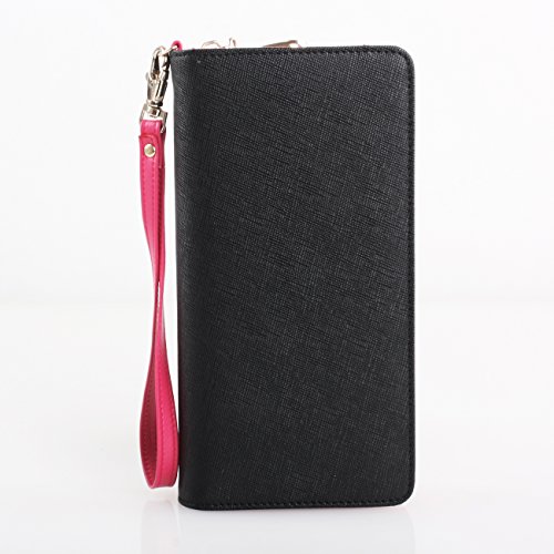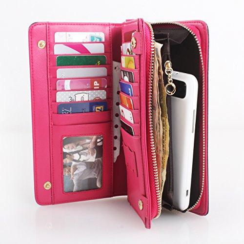 -. Feature : Dimensions: 7.7"(L) x 3.9"(W) x 1.0"(H) / Materials: Genuine Leather and Microfiber / Structure: Contains 15 card slots, 2 big cash pockets, 2 bill slots, 1 zipper pocket, 1 clear photo window. Can hold a passport,mobile phone,lip gloss,checks,cards,coins and cash / Premium multi-functional women long zipper wallet . Leather wrist strap makes the clutch wallet easy to carry. Can ready to be wonderful gift for family and friends / Large capacity for money,cards and cell phone like iPhone 5, 5S, 5c, iphone 6, 6S, 6 plus, 6s plus, iphone 7, 7 plus, iphone 8 and any phone that in a similar or smaller size.