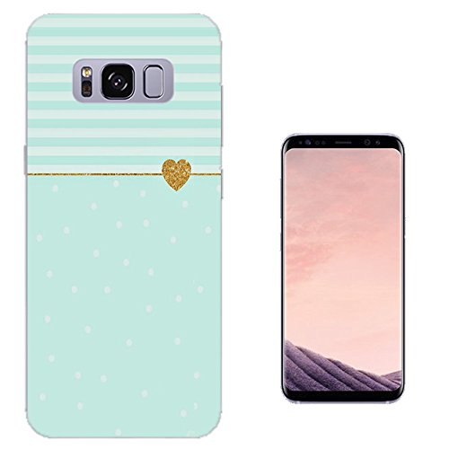-. Title : 003252 - Gold heart green teal stripes girly design decorative Design Samsung Galaxy S8+ Plus CASE Gel Silicone All Edges Protection Case Cover