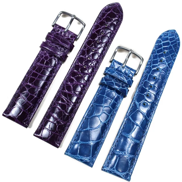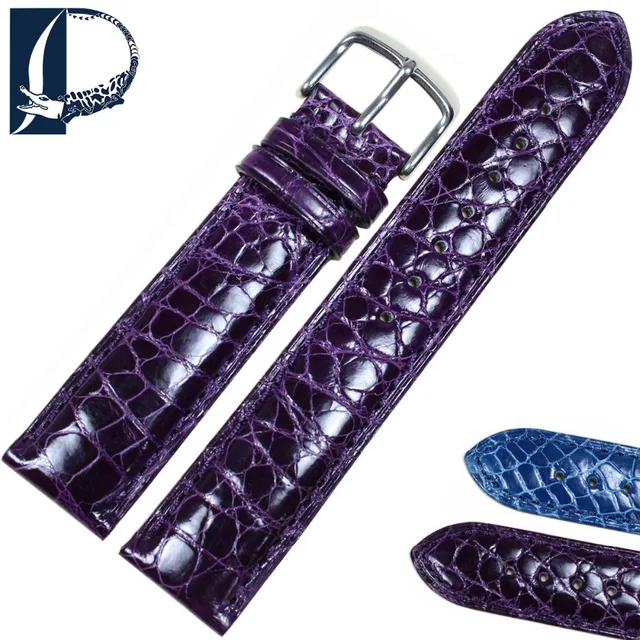 Pesno 밝기 보라색 블루 미국 Aliigator 피부 가죽 손목 악어 가죽 시계 스트랩 여성