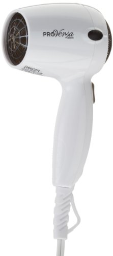 - White colored hair dryer measures 4.25-inches (W) by 7.75-inches (H)