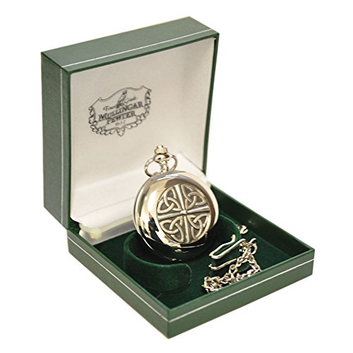 -. Feature : Classy pewter and steel Celtic pocket watches! / Measure approximately 2" in diameter. / Come on a chain measuring approximately 14 ½" long. / Crafted in Co. Westmeath Ireland by Mullingar Pewter.