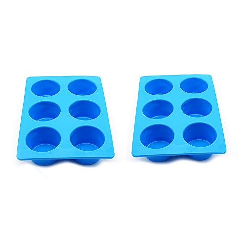 Wolecok 2 Packs Muffin Pan,6 Cups Silicone Cupcake Baking Tray (Blue)