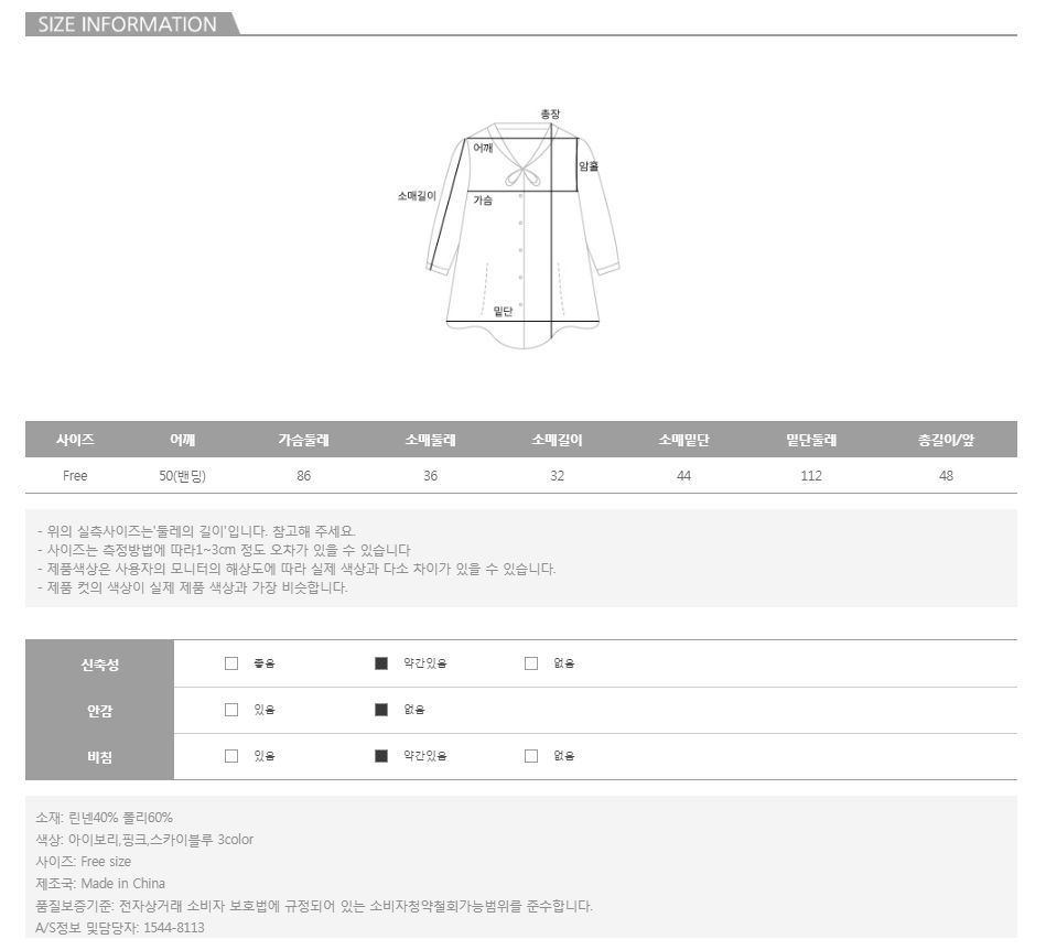 모델의 착용 컬러는 아이보리 입니다.