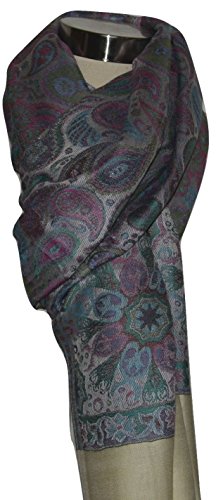 Binding : Apparel Product Description ITEM DESCRIPTION Handcrafted by artisans from Kashmir with Premium Quality Mulberry Silk and Pashmina Wool Modal fabric. This Scarf/Shawl is luxurious, super soft, warm, beautiful Multicolor Jamawar Weave Design in Paisley Floral . Very light weight and apt for any occasion. Never out of fashion. Dimensions: 78 Inches * 28 inches (Approximate) Maintenance: Dry Clean only. 0