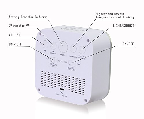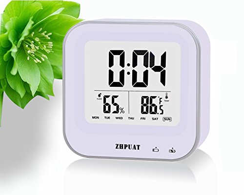 Zhpuat 3.6" Smart Morning Clock,soft Light Technology,humidty and Temperature(both C and F)display,rechargeable Li-on Battery Inside, Repeating Snooze,easy to Set White