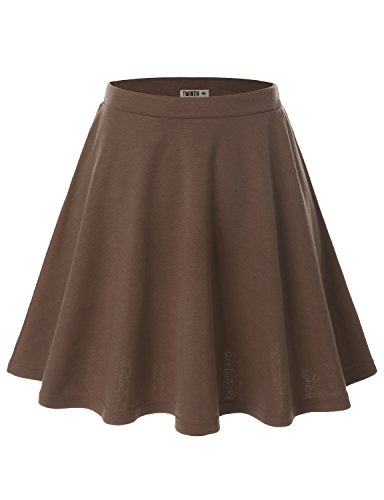 - Title : Doublju Women Plus-size Flower Print Elastic Waist Band Scuba Fabric Flared Midi Skirt Cwbss03_Mocha L