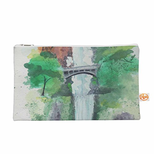 KESS InHouse Rebecca Bender "Multnomah Falls Watercolor" Green Painting Everything Bag, 8.4" x 4" (RB3006AEP03)