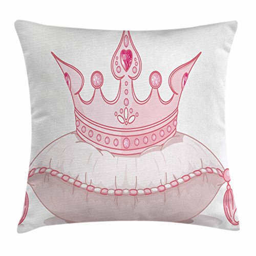 (Ambesonne)/Bedding Bath/Bedding/DIRECT FROM USA/Queen Throw Pillow Cushion Cover by Ambesonne, Cartoon Style Cute Pink Princess Crown on Pillow...