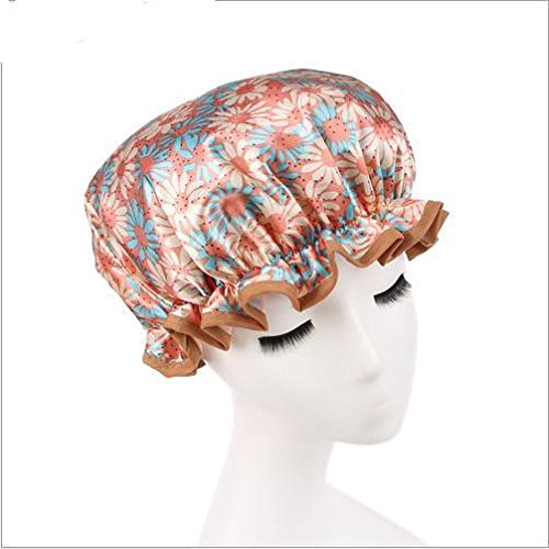-. Feature : Material:Strong vinyl Satin+PEVA,Waterproof Top diameter:approx 10.8"; Pullover elastic diameter: approx 5" / Comfortable elastic band. / Large, won't fall off your head. / Trendy, fashionable design. / Perfect shower cap,Great for home or travel use,Useful and adorable!