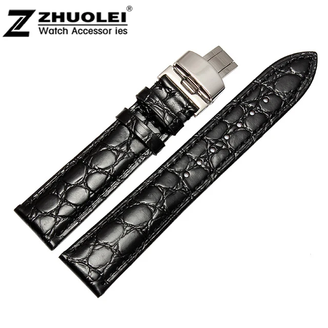 | [해외] 시계 밴드 16 미리메터 18 미리메터 20 미리메터 블랙 정품 가죽 시계 줄 시계 스트랩 팔찌 나비 시계 버클 버클 |