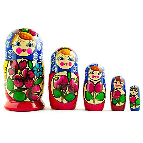 -. Title : 6" Set of 5 Maydanovskaya in Blue Scarf Russian Nesting Dolls