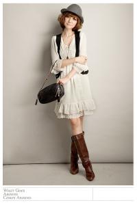 Aラインシルエットや袖口や裾には上品なレースとフリルがつき、女性らしさたっぷり♪