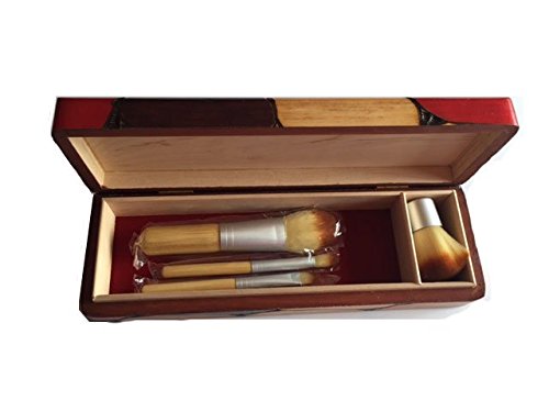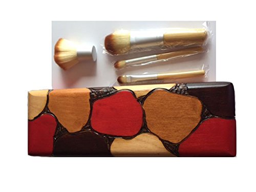 Handcrafted Wooden Make Up Brush Holder and Brush Set, Bamboo Make Up brush Set, Beautiful and Unique Box Made of Wood. Ecofriendly gift box.