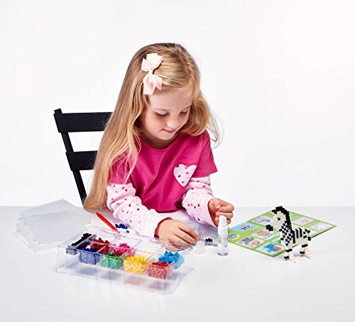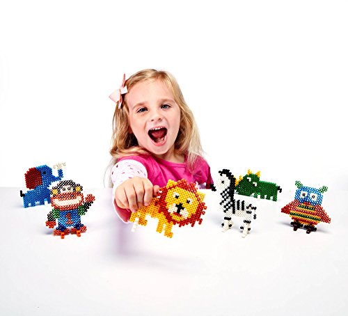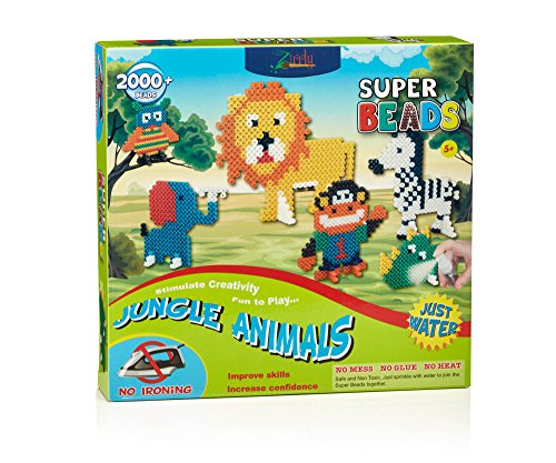 The days of kids burning themselves trying to iron their Perler Beads are done. With our new and unique Super Bead, kids and adults can create their designs and with just a few sprays of water and some air drying time, the beads fuse together. The completed designs have a much nicer finish to them than the Perler Beads and are even flexible and won't crack. Even if the beads happen to come apart, just spray them again and the beads will refuse together. Set Includes: Lion, Rhino, Elephant, Zebra, Owl and Monkey templates, Super Beads, 6 boards, 1 spray bottle and 1 plastic tool.Feature