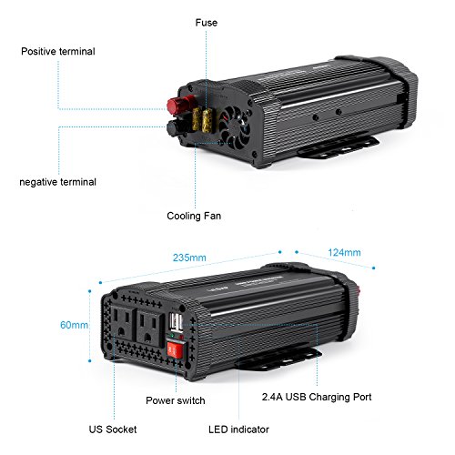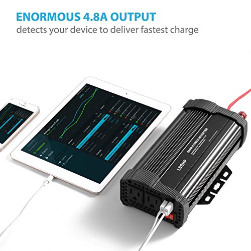 Smart Charging - the power inverter is equipped with 2 Smart USB charging ports, automatically detect your devices to deliver its fastest charge speed up to 2.4 amps per port/4.8 amps max
