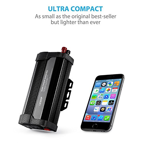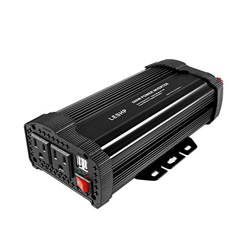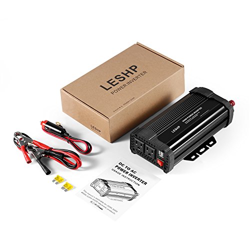 Power Inverter Converter,LESHP 500W 12V DC to 110V AC Modified Sine Wave Car Power Inverter Converter with Cigarette Lighter & Alligator Clips Cable