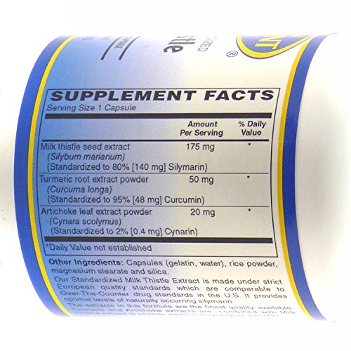 Studio : Vitamin Discount Center Publisher : Vitamin Discount Center Product Description Our Standardized Milk Thistle Extract provides optimal levels of naturally occurring silymarin, a potent antioxidant and flavonoid that protects the liver. Our milk thistle helps the detoxification of pollutants, supports the digestive system and contains anti-inflammatory and antioxidant properties. Turmeric and artichoke extracts have been added to provide additional synergistic benefits. Adults take one (1) capsule, one (1) to three (3) times daily with meals, or as directed by a Health Care Professional. As a dietary supplement, adults take one (1) lozenge daily, or as directed by a health care professional. Allow lozenge to dissolve in the mouth. Store in a cool, dry place and away from direct light. 0