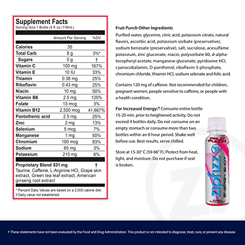 ReleaseDate : 2014-05-13 Studio : Zipfizz Publisher : Zipfizz Binding : Grocery Product Description Zipfizz is an all-natural, great tasting energy drink that delivers a powerful charge of micronutrients to the body's fuel system, now in liquid shot form! It contains no ephedra or other artificial stimulants. Most people experience an immediate, revitalizing burst of energy after taking Zipfizz. Zipfizz, the healthy energy source is now in a liquid shot form! Give your body a rush of vitamins, minerals and key amino acids to protect the immune system. Zipfizz has created an advanced formula that provides a significant amount of vitamins, fewer calories, lower carbohydrates, superior taste, variety and unique packaging! Simply put, it's different because it's good for you. Use Zipfizz as a morning or afternoon pick-me-up, or enhance your training by taking it before, during, or after a hard workout. Because Zipfizz contains no sugar, users will experience an increased energy level for up to 4 - 6 hours with out the sudden "crash" associated with other energy drinks. 0