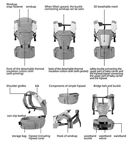 Studio : Shenzhen YunYang Network Technology Co., Ltd. Publisher : Shenzhen YunYang Network Technology Co., Ltd. Binding : Baby Product Product Description The BBWW Four-season Baby Carriers combines SIX carrying positions, lasts longer, and includes more features: 1. Adjustable center panel: zip up for warmth and zip down to reveal cool, breathable, 3d mesh. 2. The hipseat has built-in EPP core which can better support the weight of baby and reduce the pressure on shoulder and back of mother. 3. Non-slip leather is added on the hipseat to prevent baby from gliding. 4. Storage bag is added on the waistband to store cellphone, key or other objects. 5. The storage bag designed in front of chest and in the back of the thermal insulation cotton cloth can be used for storing some small parts. 6. Main body of the baby carrier and hipseat are fixed by zipper and double buckles to guarantee the safety of baby. 7. Open design of main body of the baby carrier can be disassembled according to requirement for all seasons. 8. Removable bib is attached on the shoulder girdles to prevent the baby from smudging the girdles. 9. Removable mesh cloth cap design is cool and breathable and can support baby's head. 10. Lumbar support - increases comfort, maintains healthy posture and alignment, and prevents lower back strain. Combined with an extra sturdy waist belt to maximize parent's comfort. 11. Extra tall, extendable torso -Provides extra neck and back support and keeps taller babies secure in the carrier. 12. Wide, padded shoulder straps waist belt - evenly distribute baby's weight for maximized comfort.