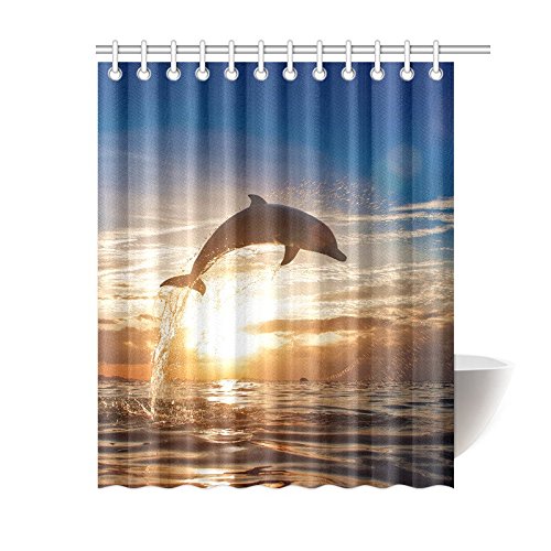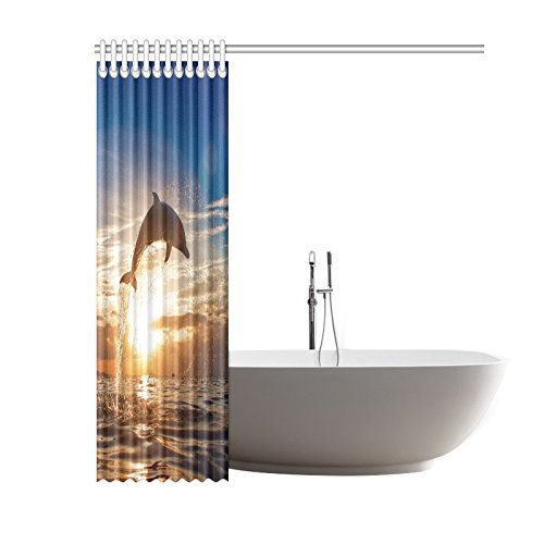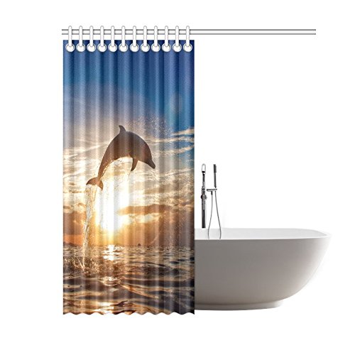 CTIGERS Cute Dolphin Jumping in the Sunset Shower Curtain for Kids Polyester Fabric Bathroom Decor 60 x 72 Inch