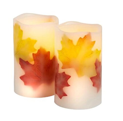 Flameless Real Wax Fall Maple Leaf LED Timer Candles, Set of 2