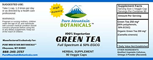 High Potency Green Tea Pills. 90 Kosher Veggie Capsules Now with 450mg Organic Full Spectrum and Pure Green Tea Extract