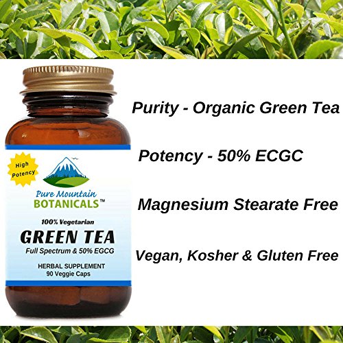 High Potency Green Tea Pills. 90 Kosher Veggie Capsules With Organic Full Spectrum and Pure Green Tea Extract